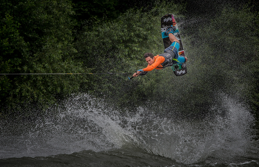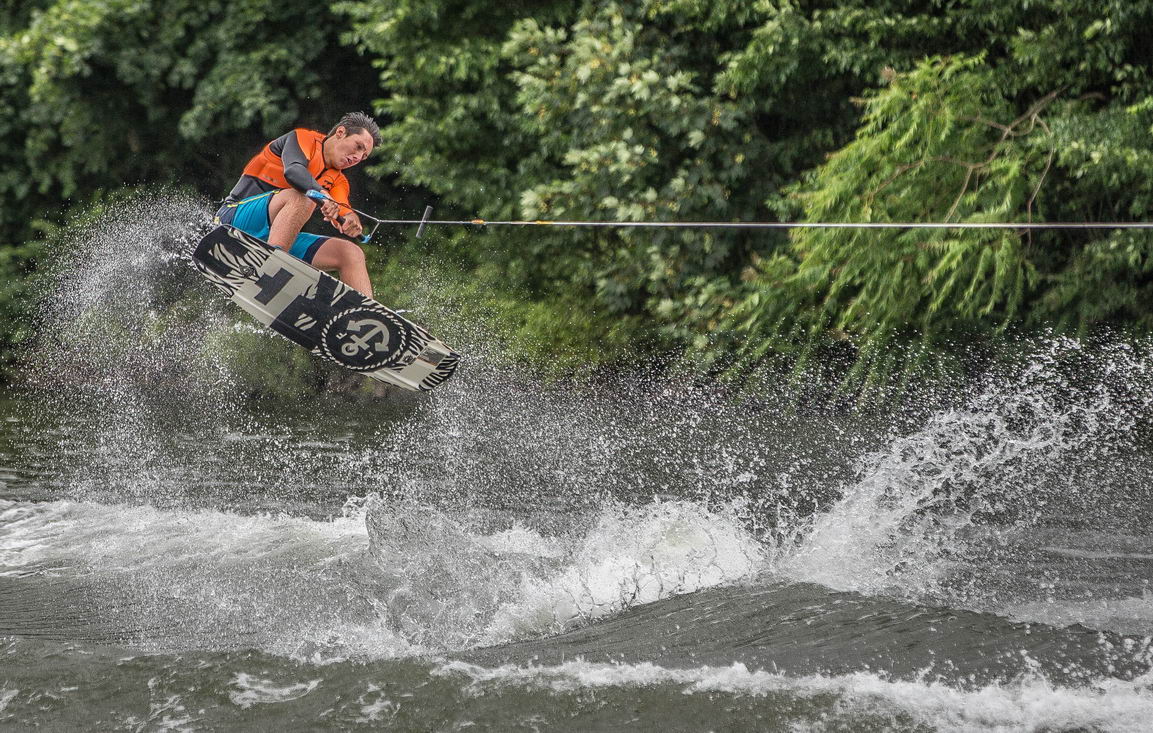 Einige der besten deutschen Wakeboarder am Würzburger Stadtstrand.