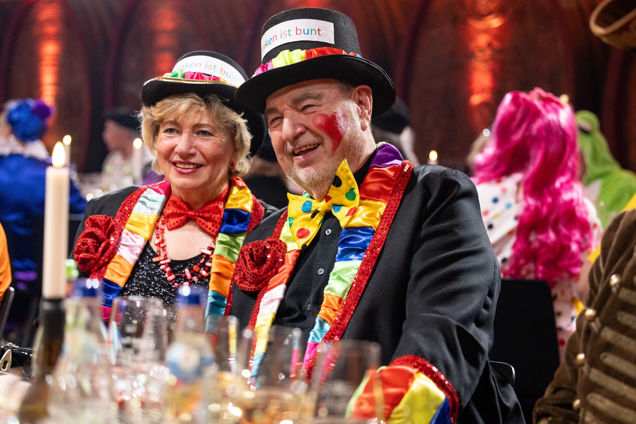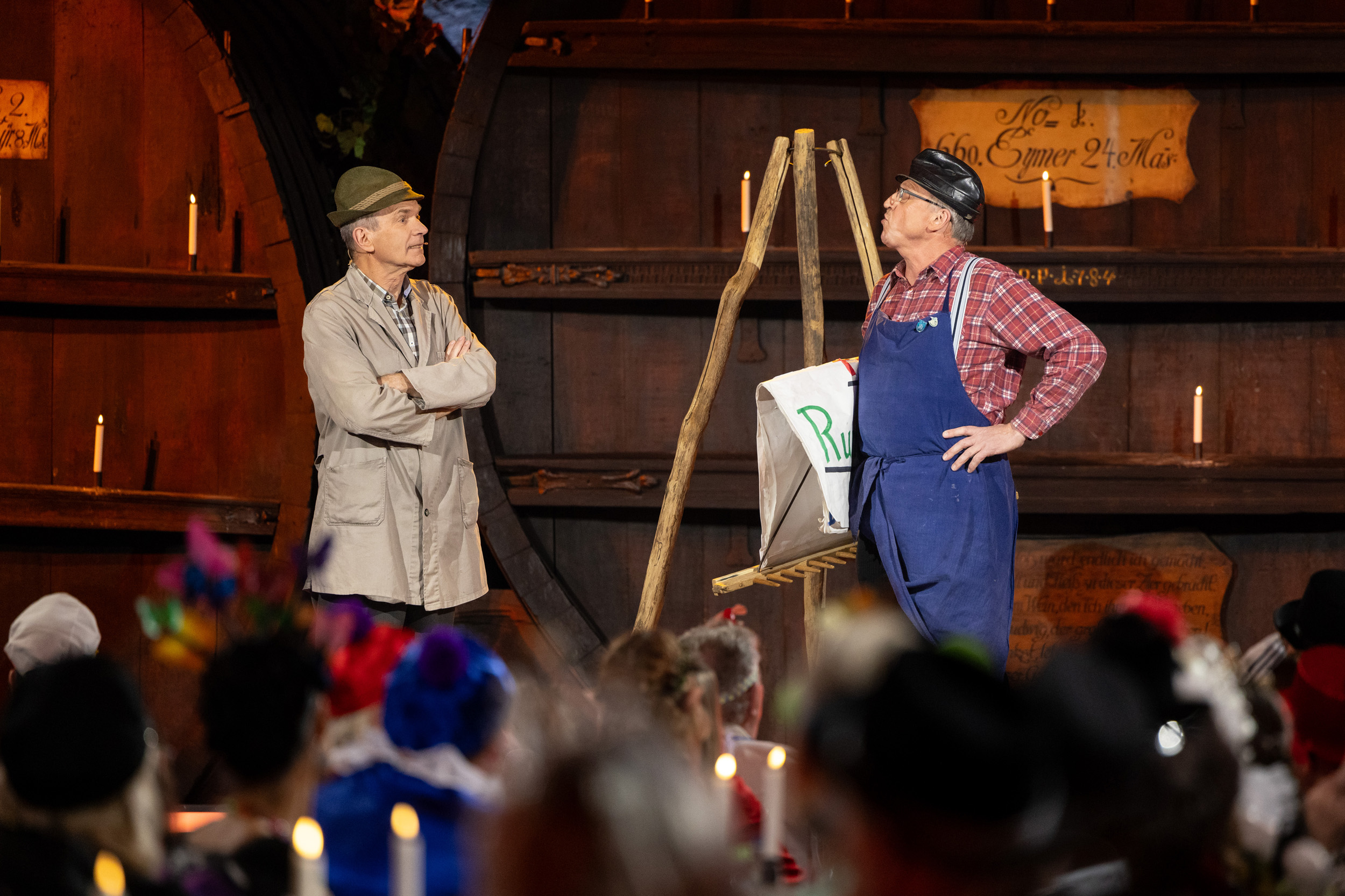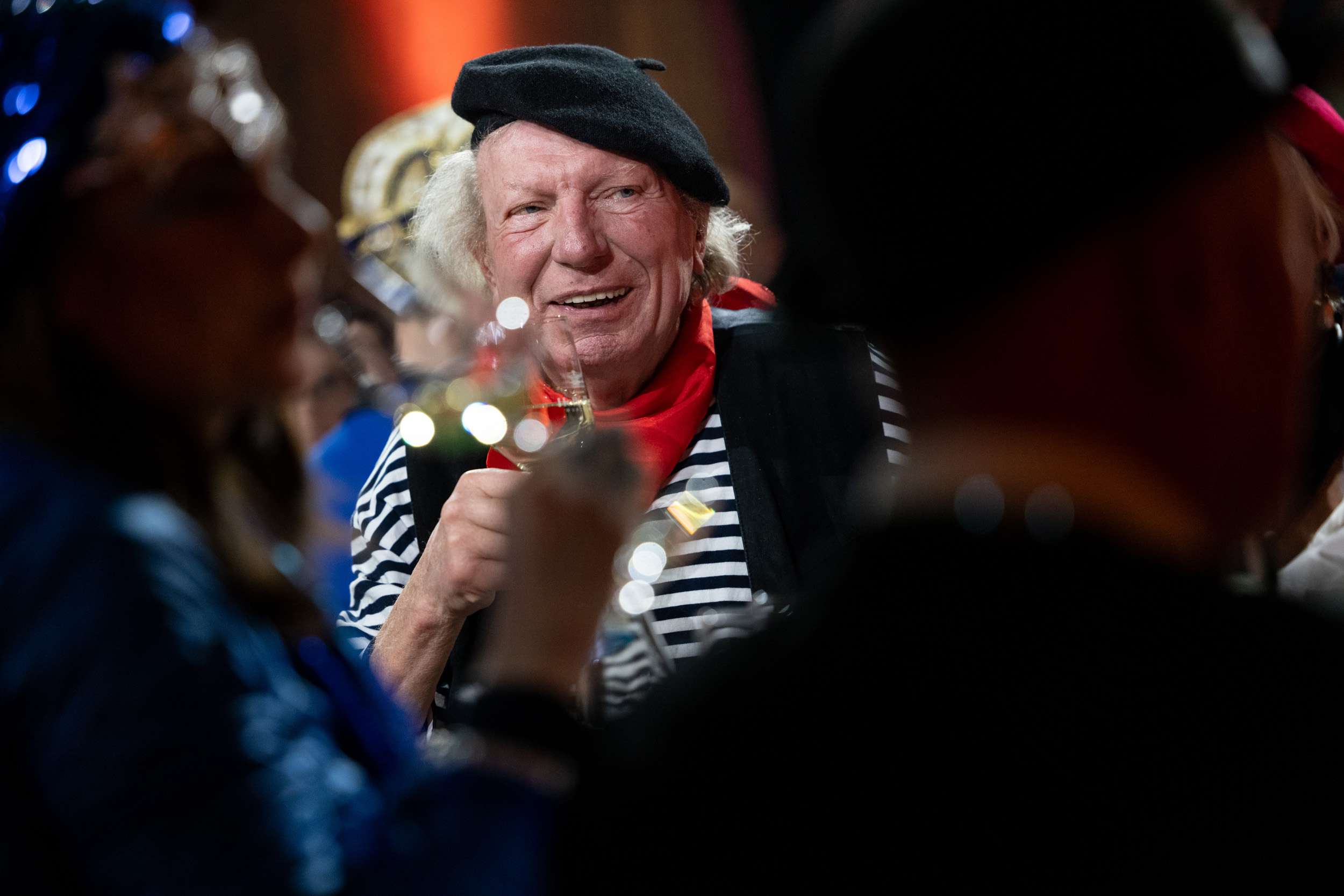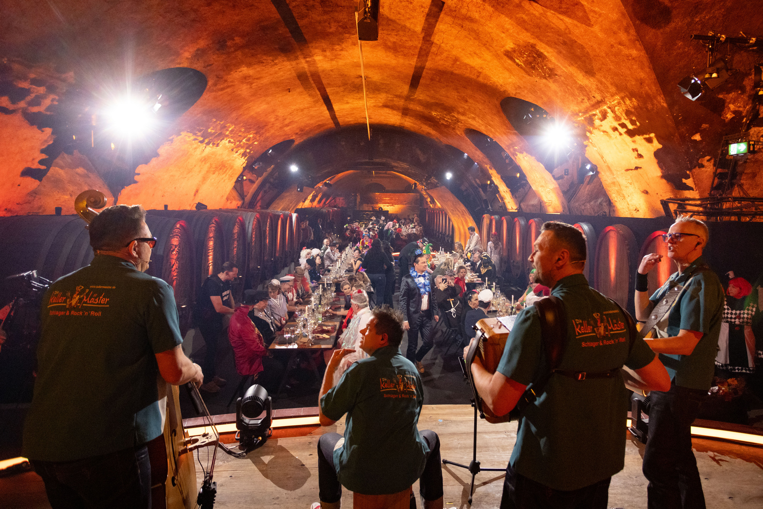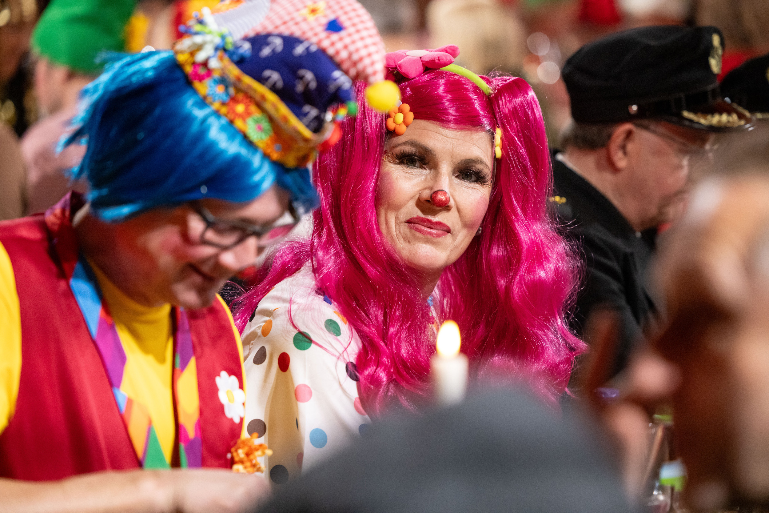 Zahlreiche Närrinen und Narren aus Politik und Gesellschaft besuchen am Sonntag (12. Januar 2025) im Staatlichen Hofkeller der Residenz in Würzburg die Närrische Weinprobe.