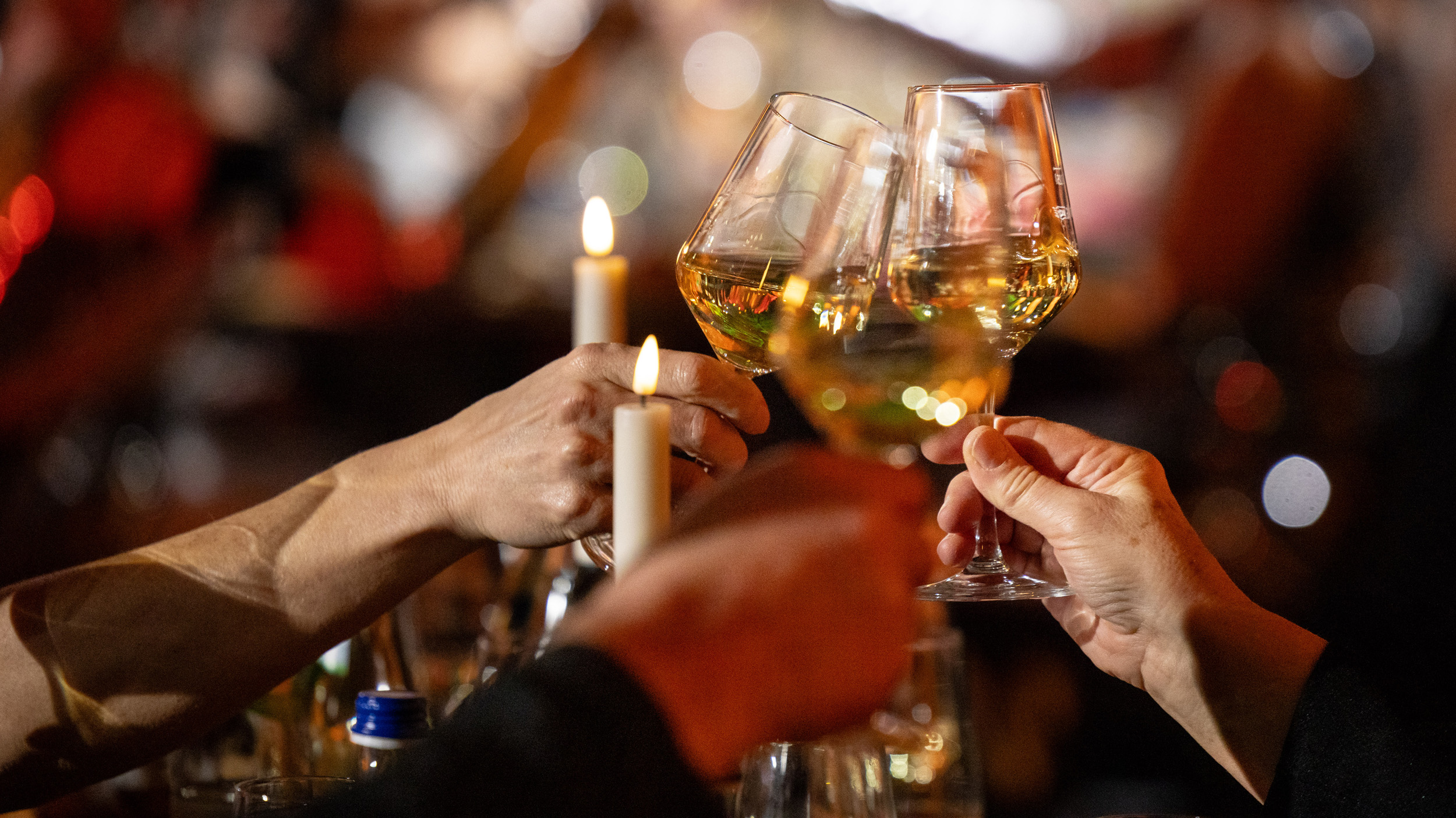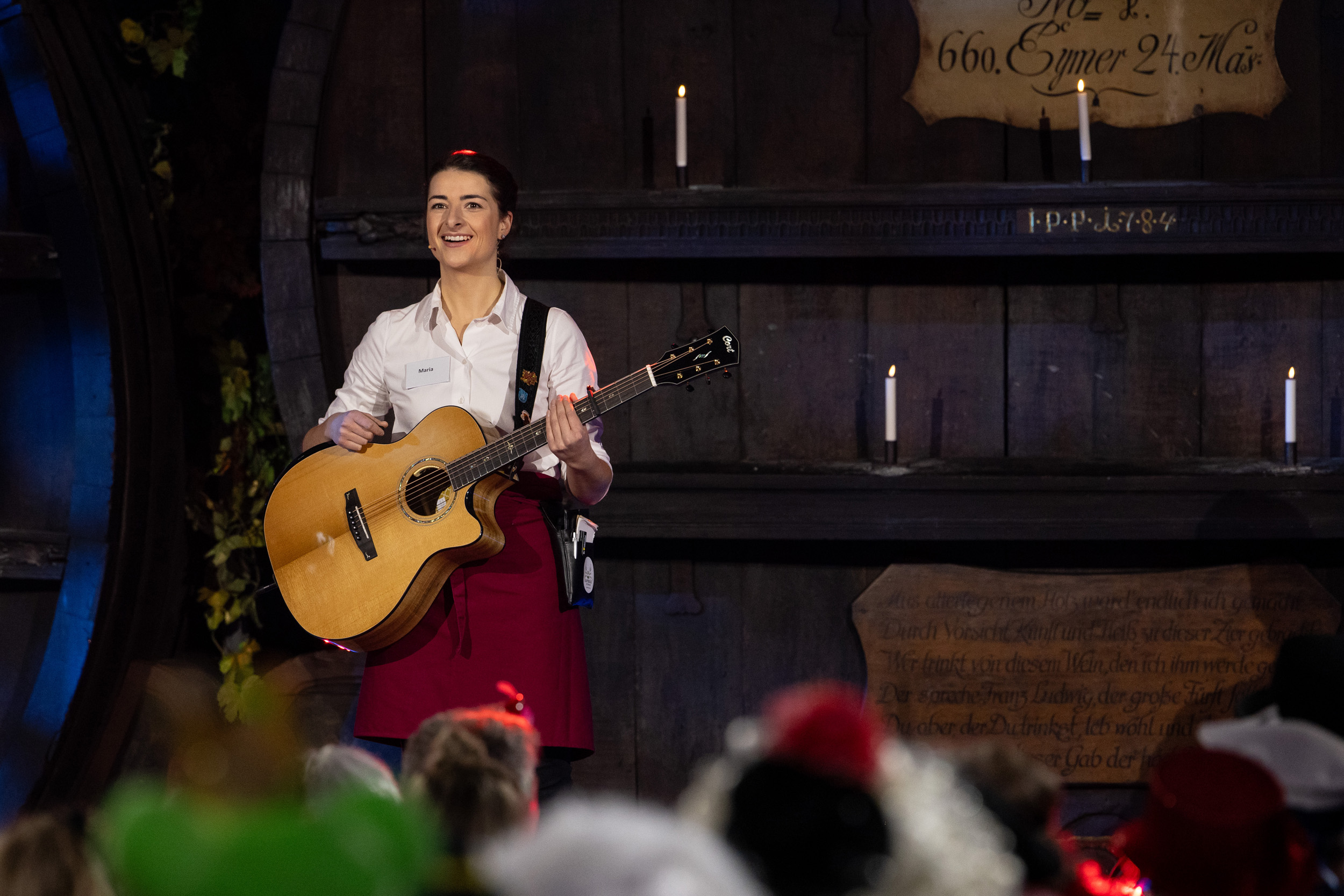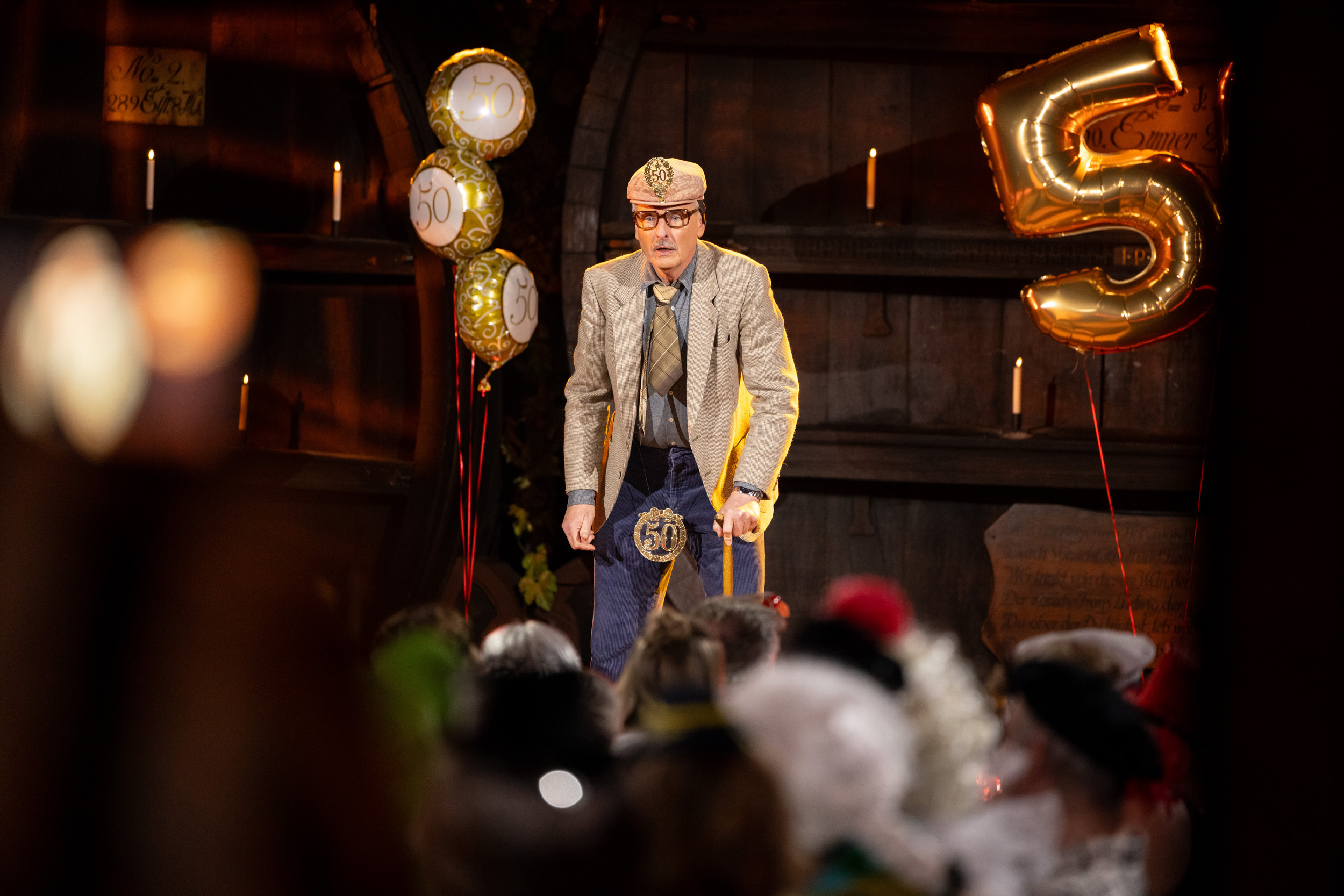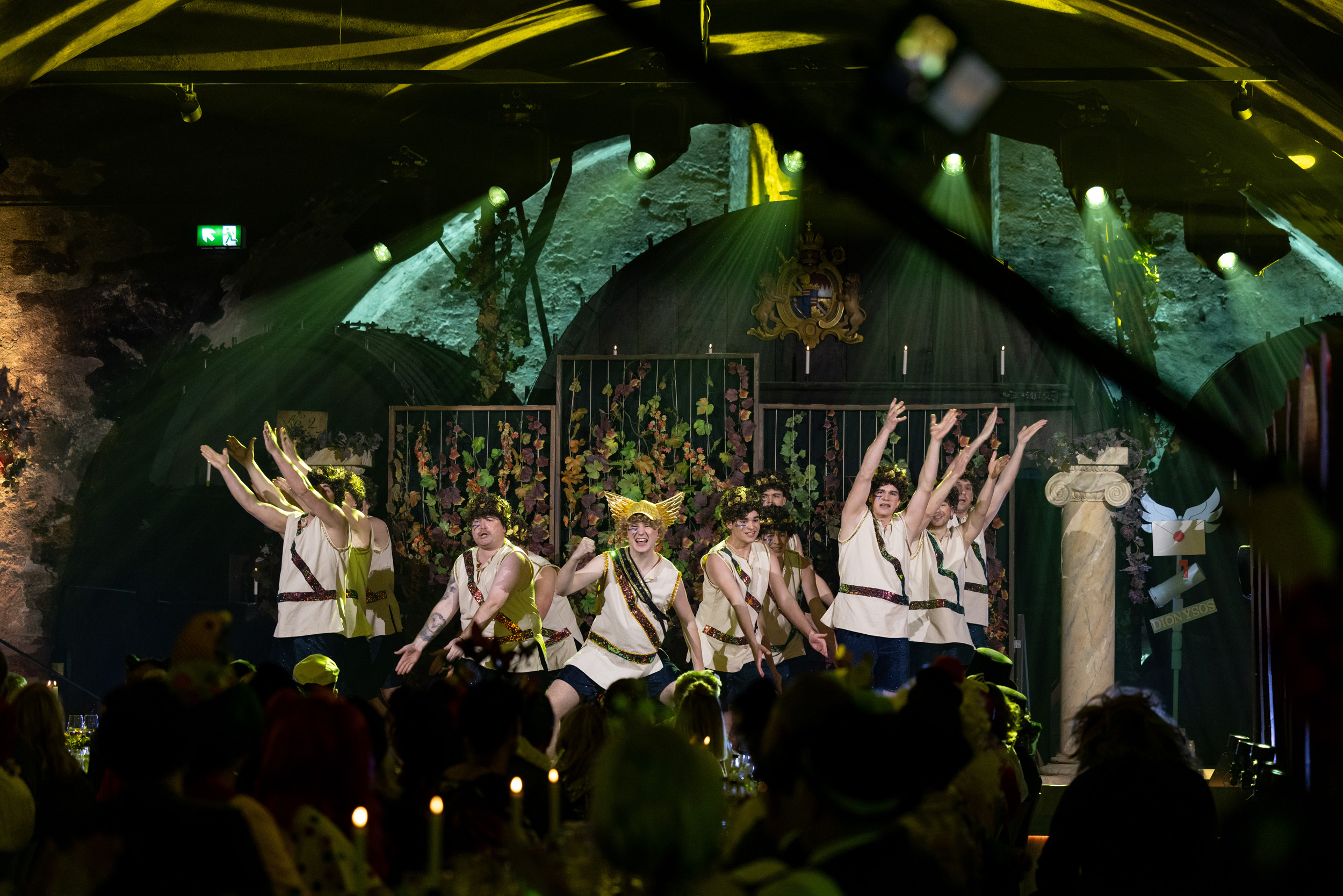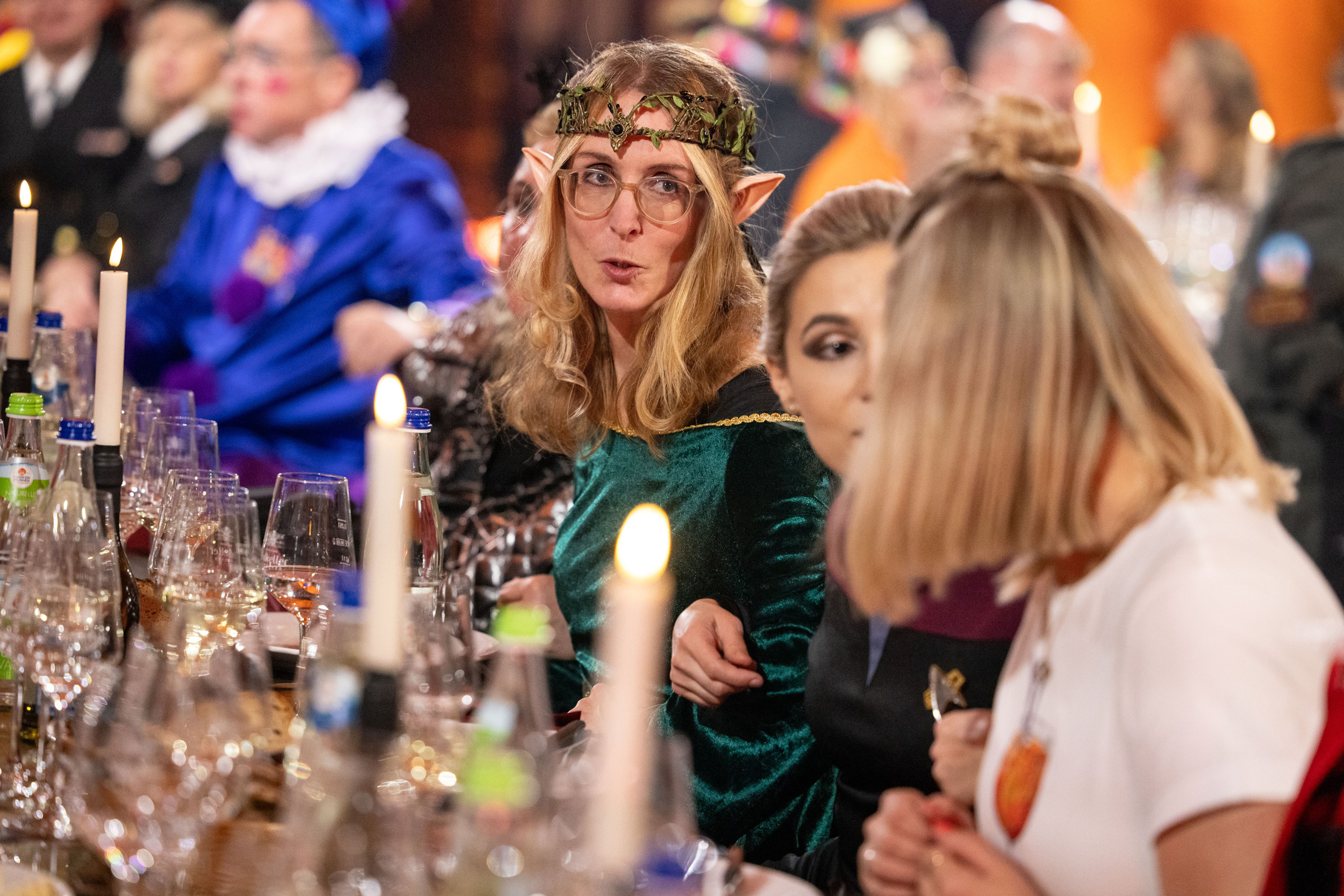 Zahlreiche Närrinen und Narren aus Politik und Gesellschaft besuchen am Sonntag (12. Januar 2025) im Staatlichen Hofkeller der Residenz in Würzburg die Närrische Weinprobe.