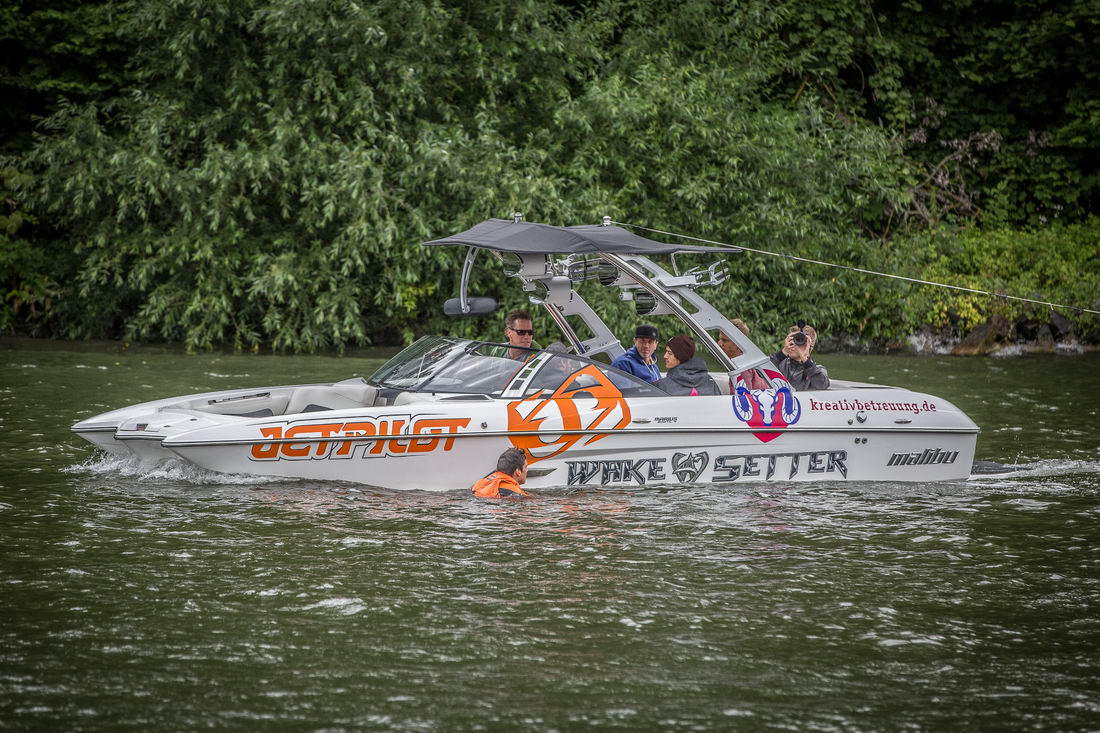 Einige der besten deutschen Wakeboarder am Würzburger Stadtstrand.