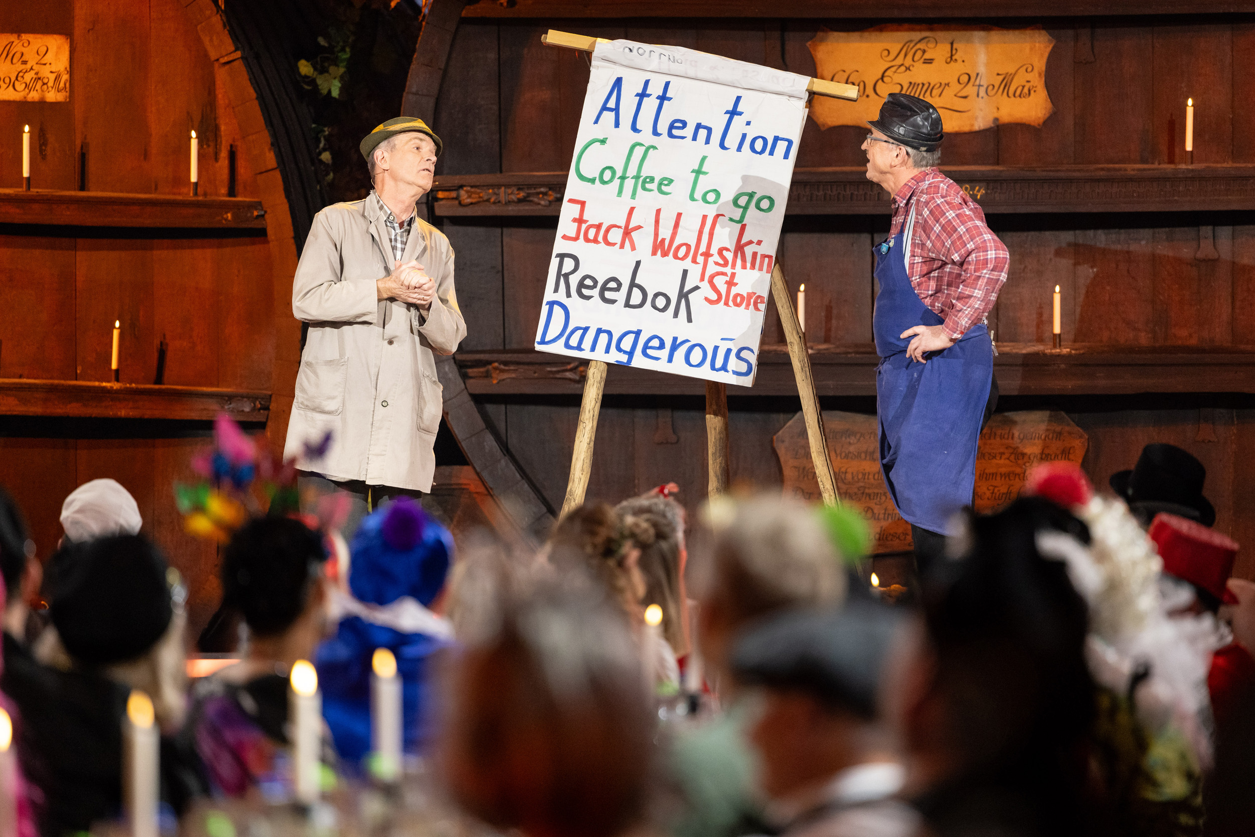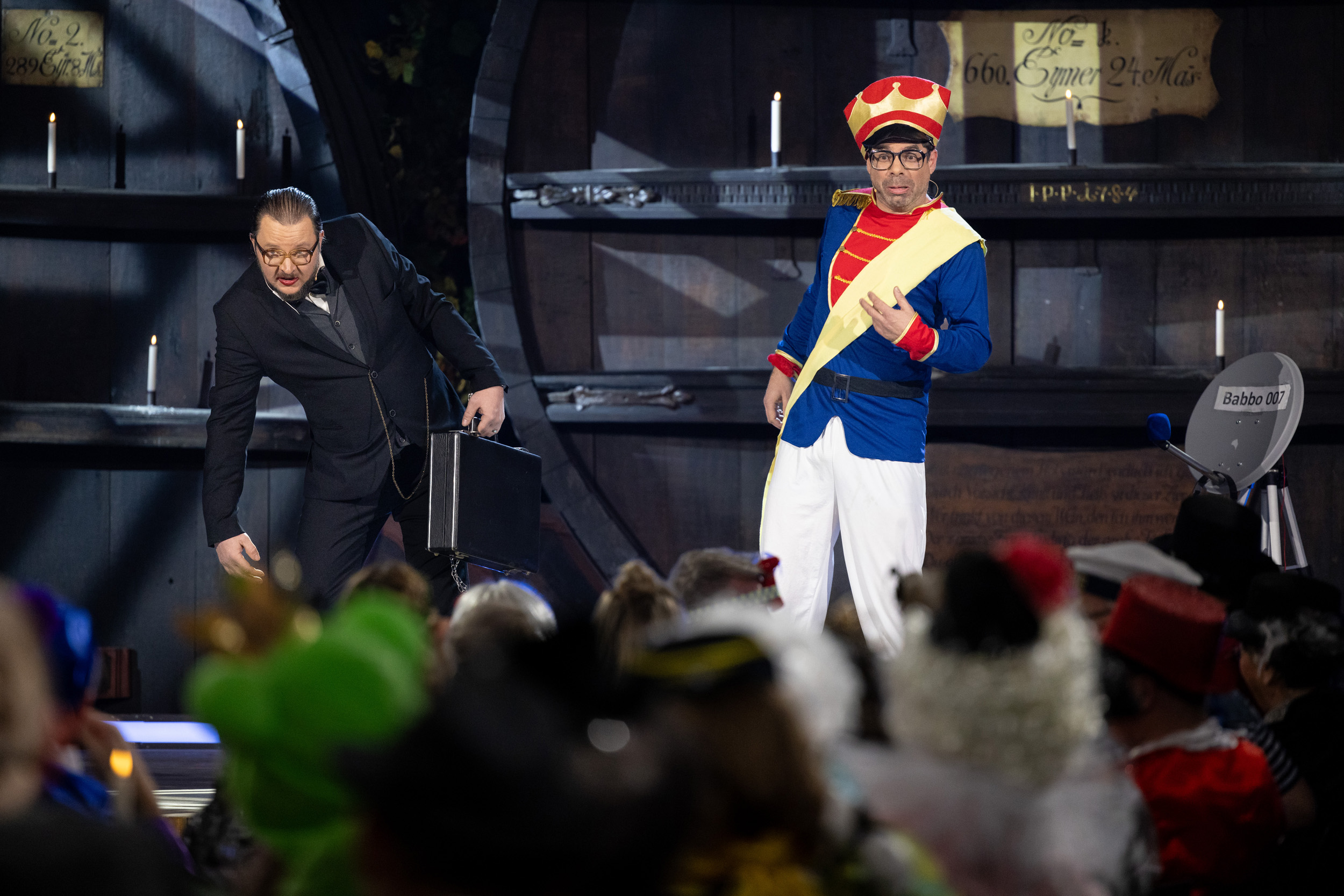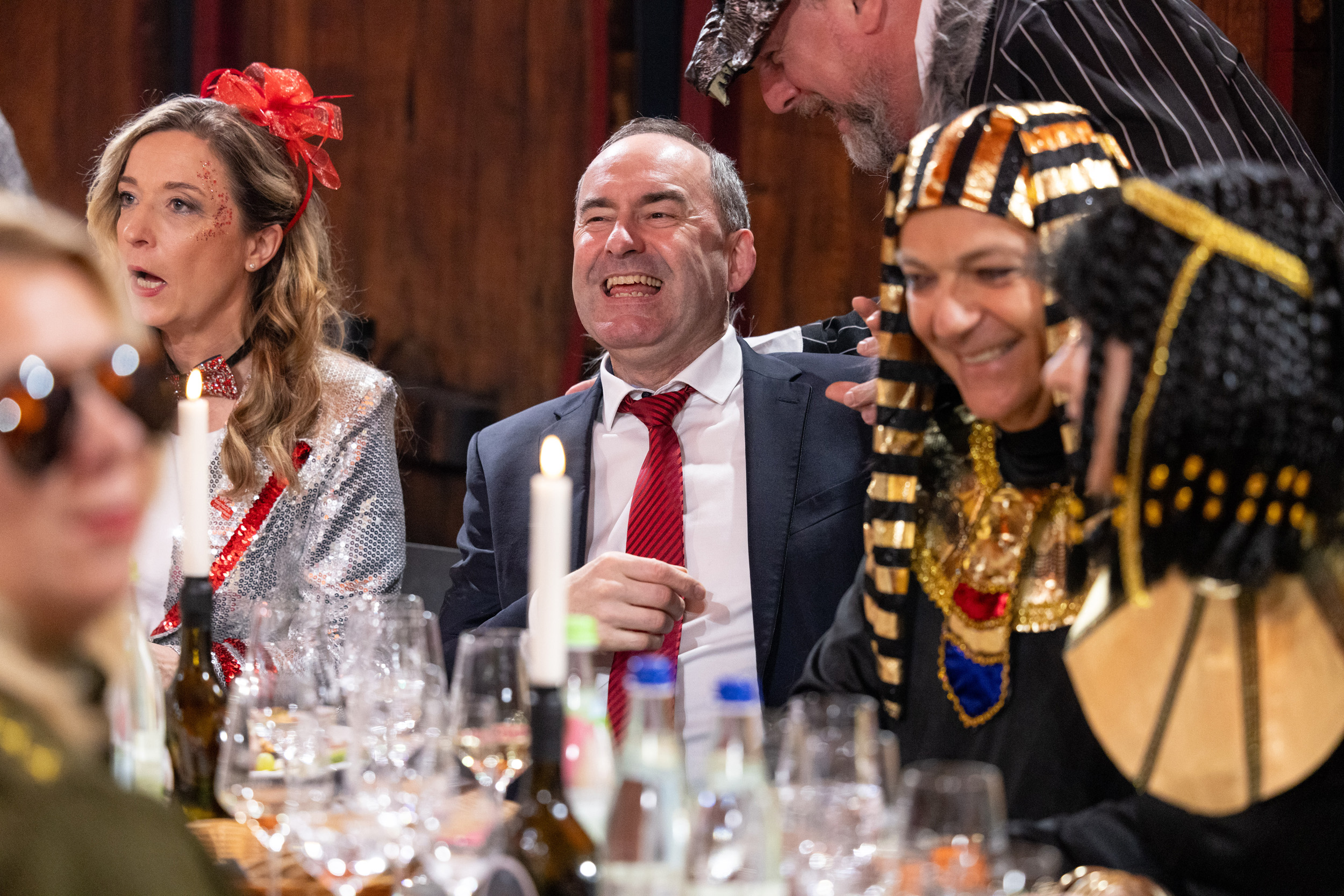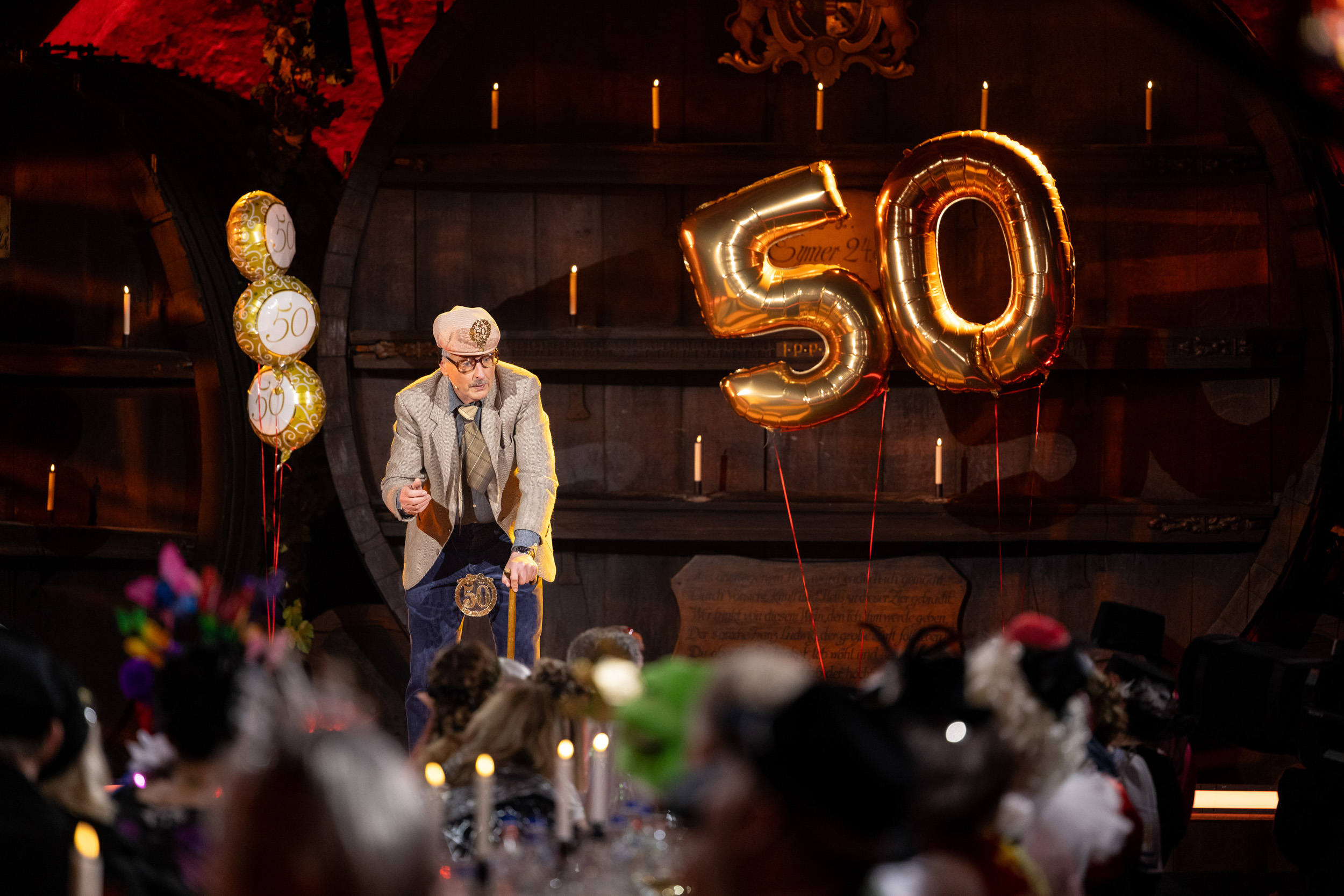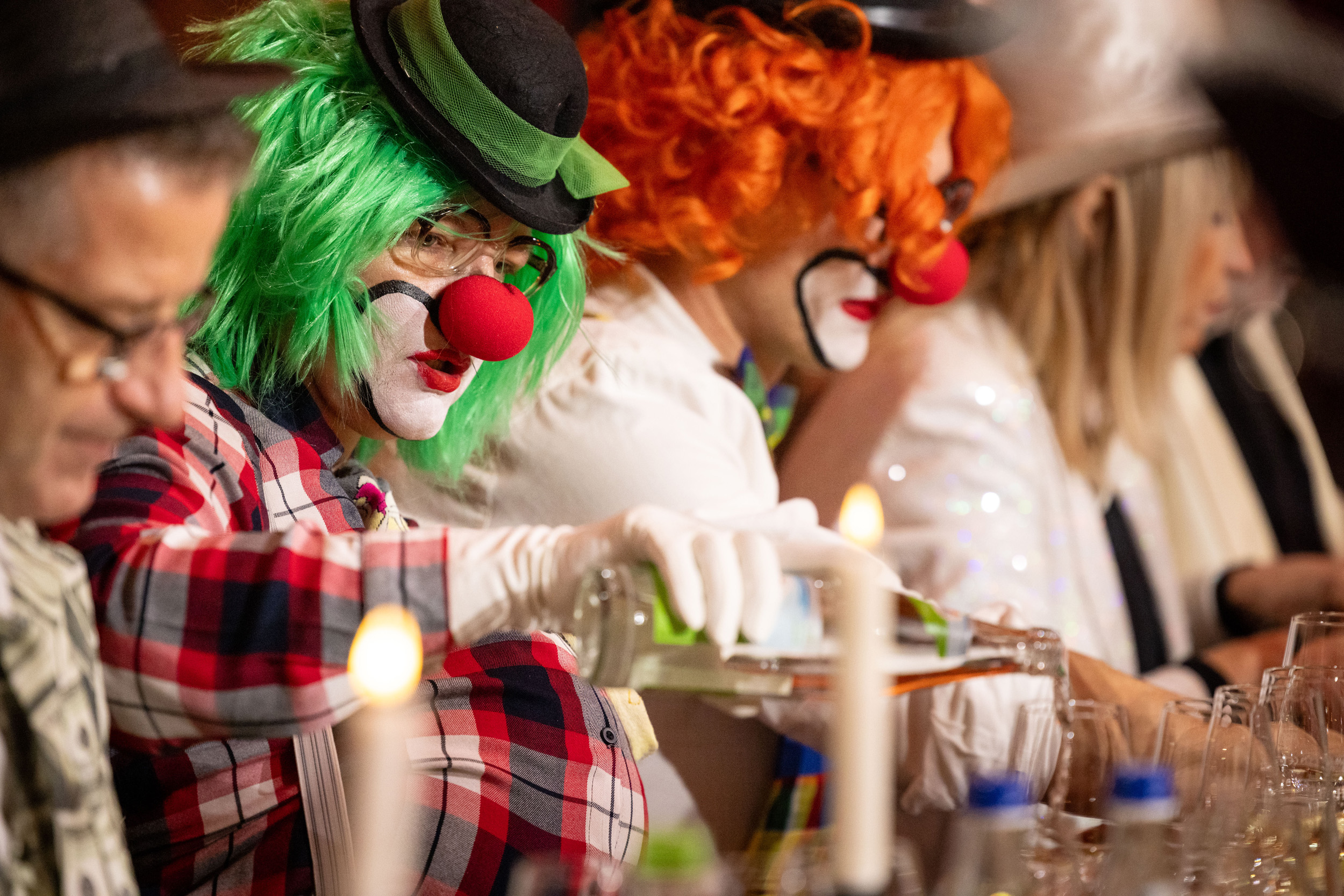 Zahlreiche Närrinen und Narren aus Politik und Gesellschaft besuchen am Sonntag (12. Januar 2025) im Staatlichen Hofkeller der Residenz in Würzburg die Närrische Weinprobe.