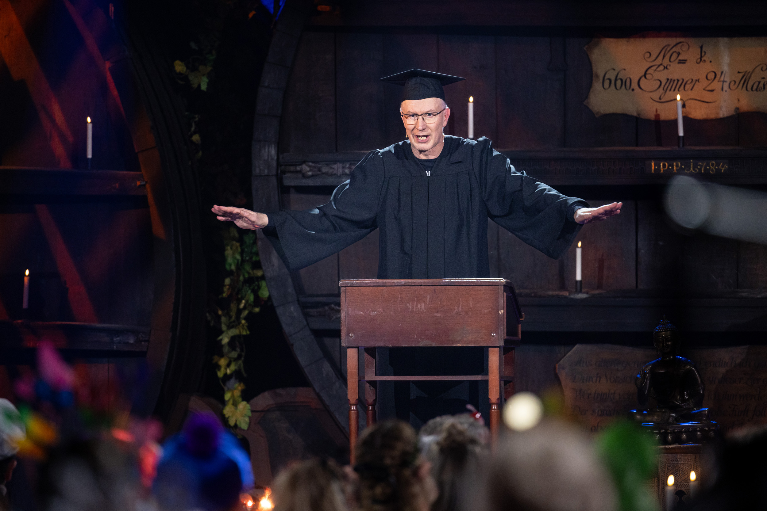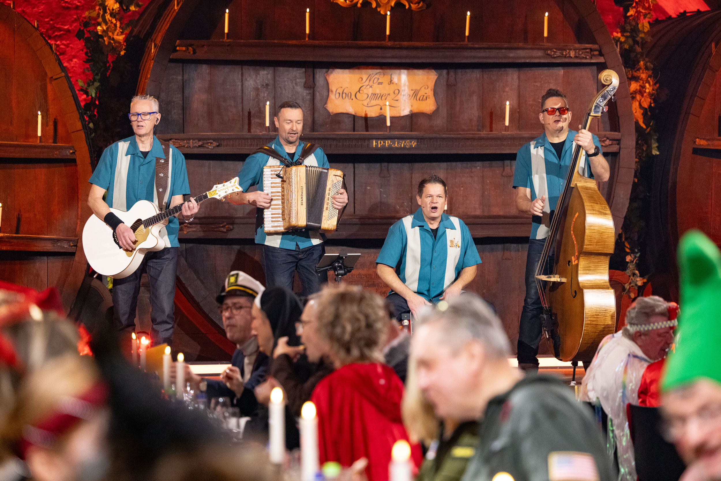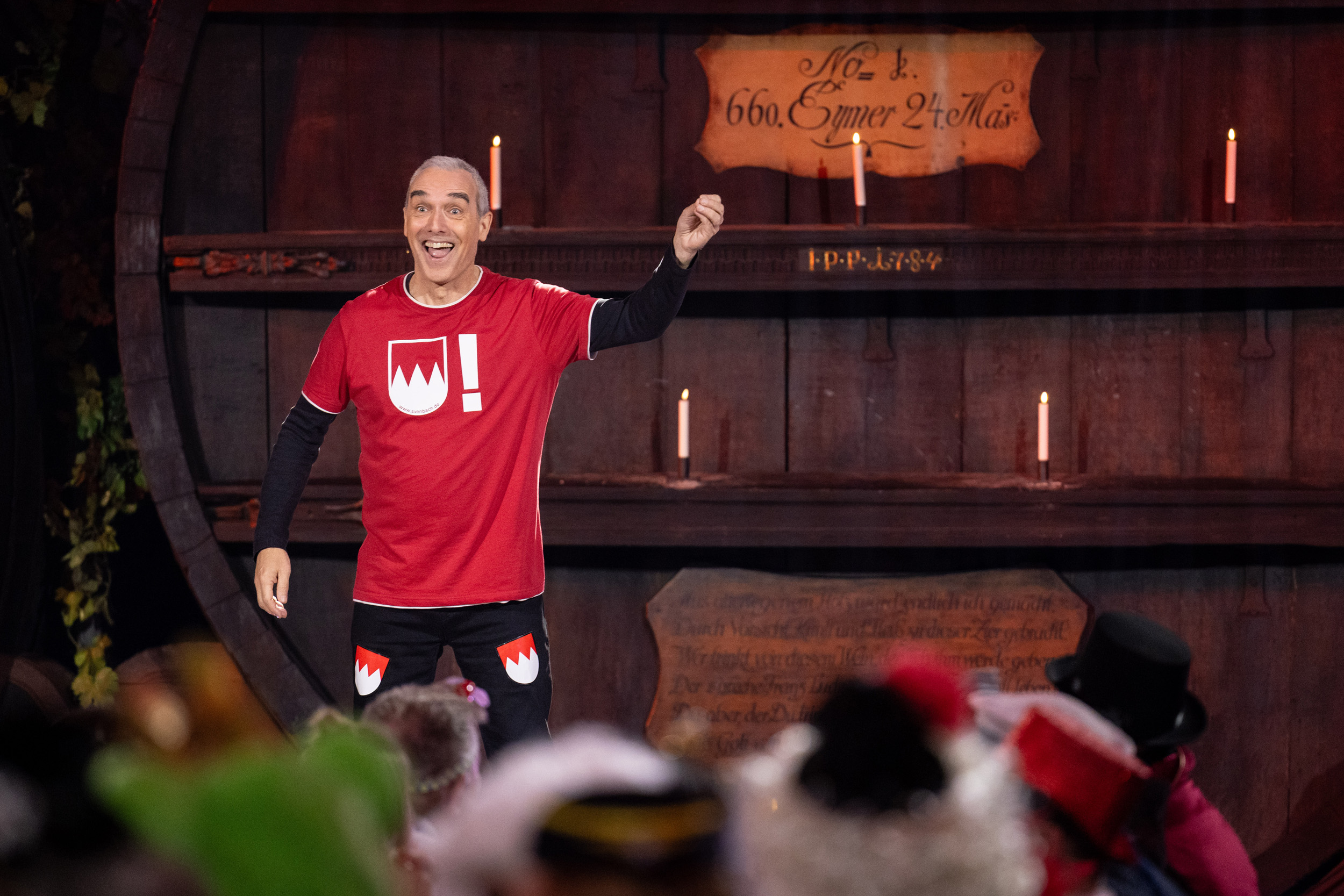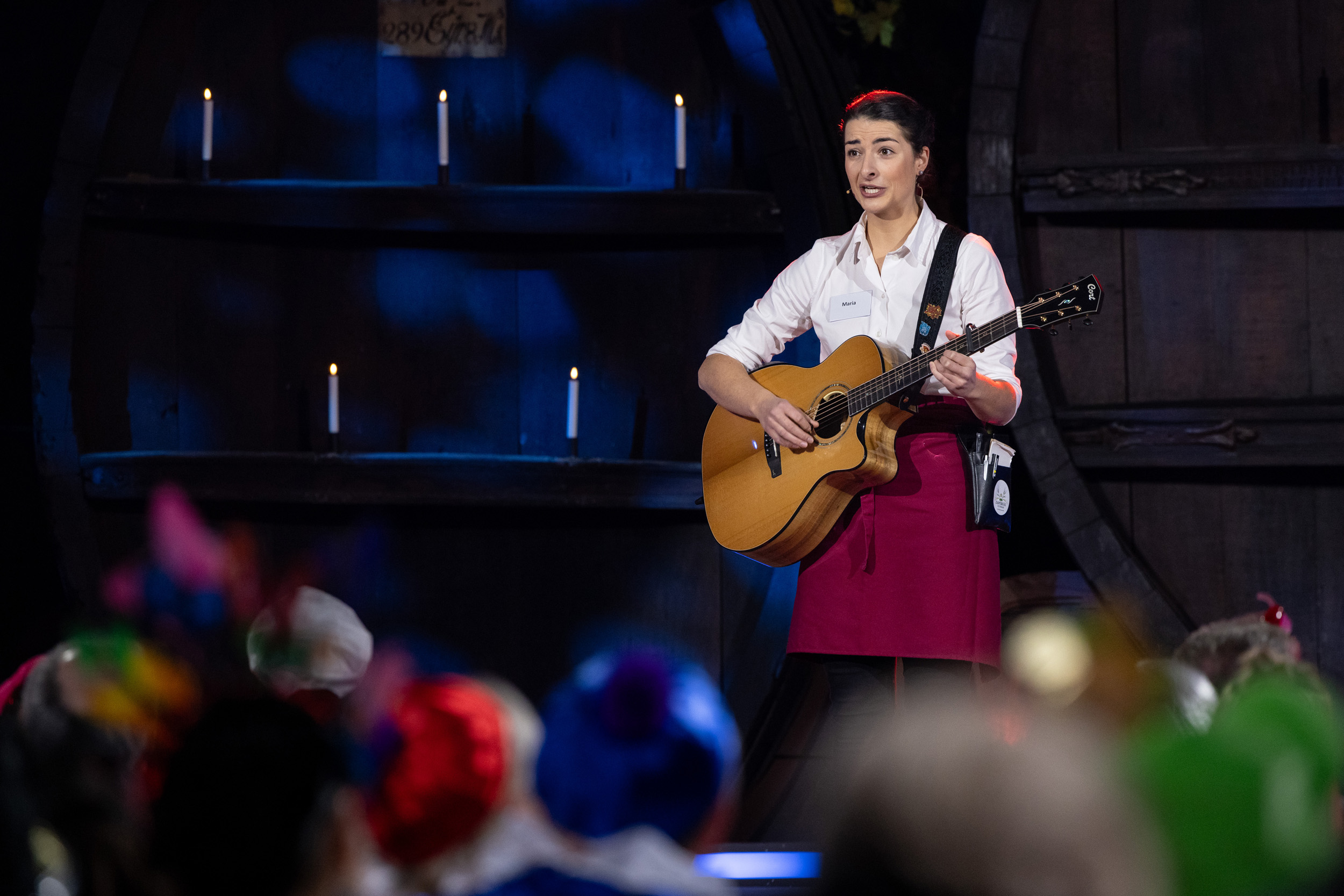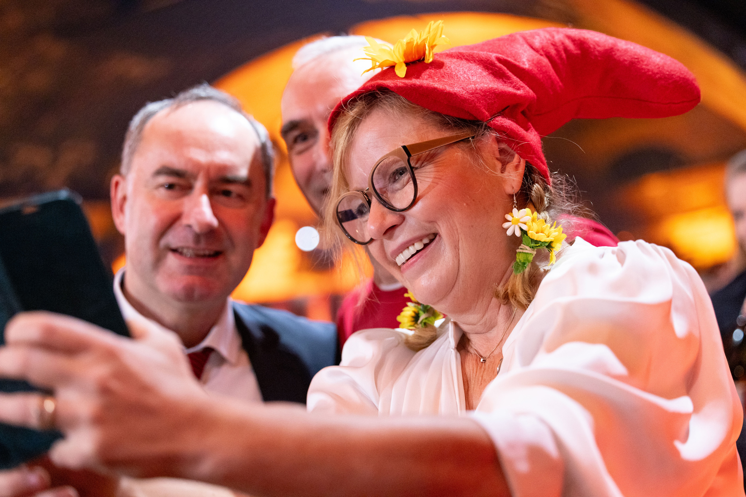 Zahlreiche Närrinen und Narren aus Politik und Gesellschaft besuchen am Sonntag (12. Januar 2025) im Staatlichen Hofkeller der Residenz in Würzburg die Närrische Weinprobe.
