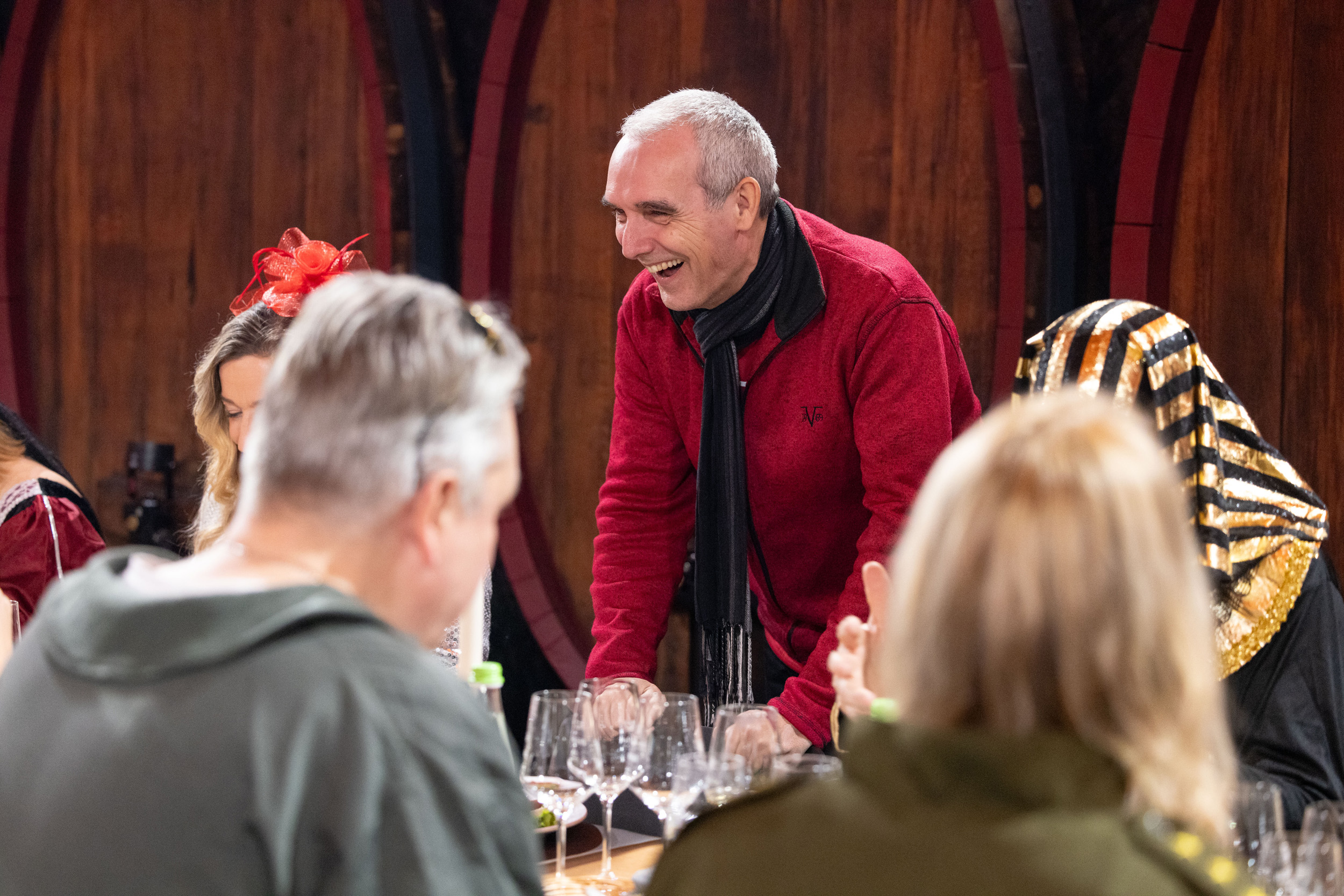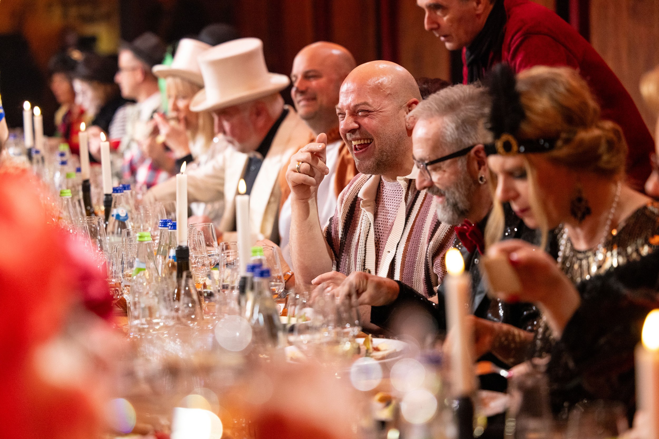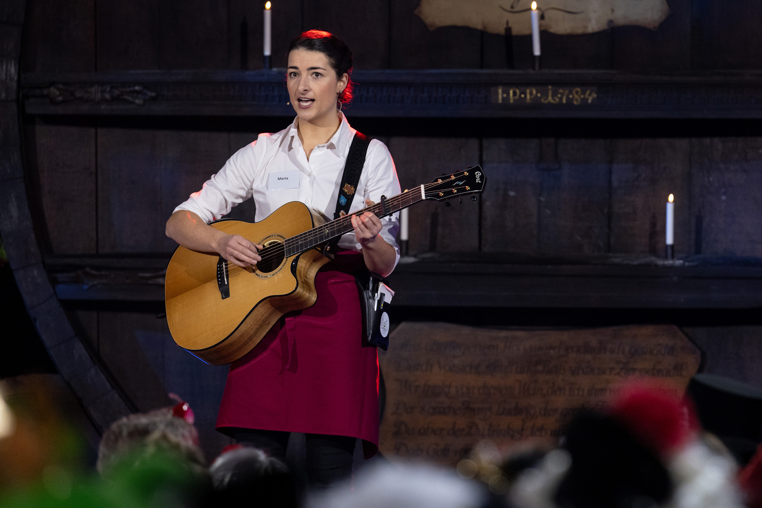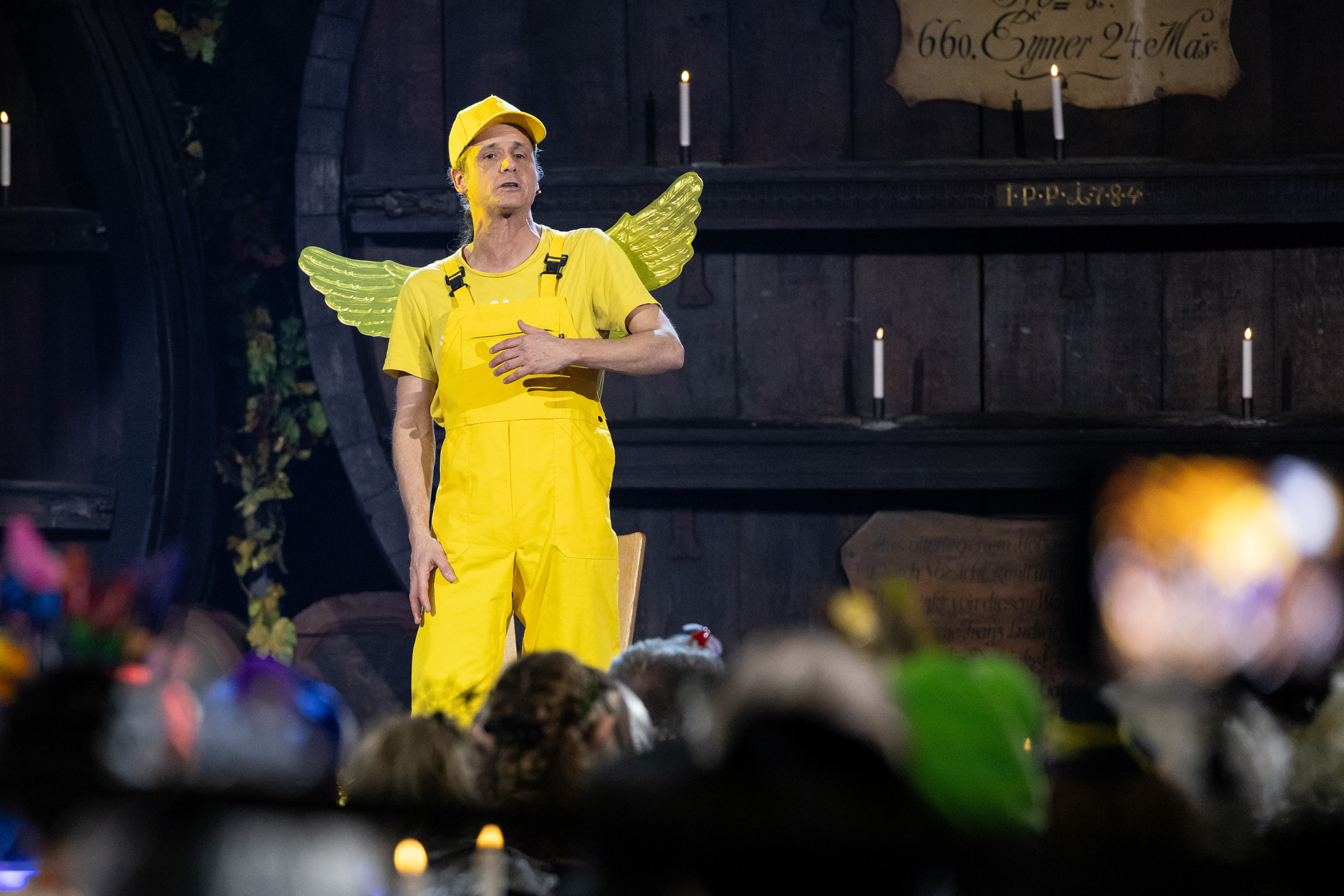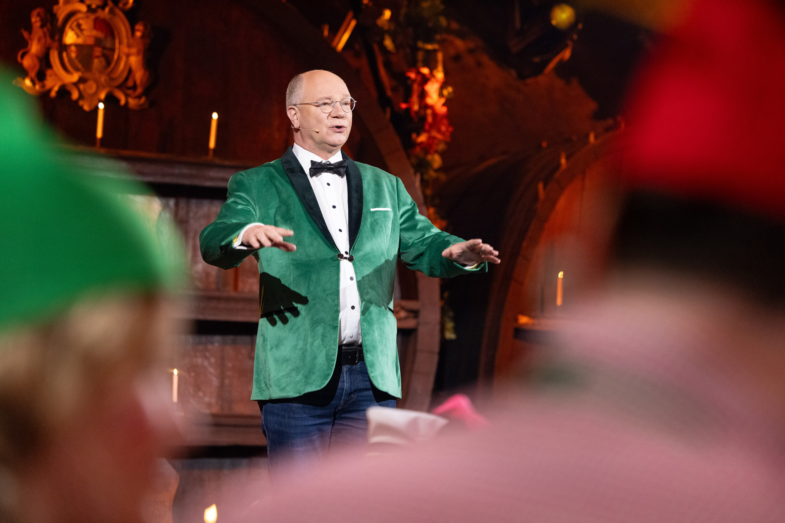 Zahlreiche Närrinen und Narren aus Politik und Gesellschaft besuchen am Sonntag (12. Januar 2025) im Staatlichen Hofkeller der Residenz in Würzburg die Närrische Weinprobe.